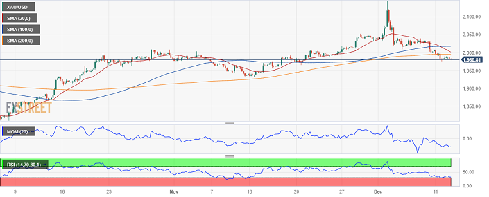 周三(12月13日)亚市尾盘,现货黄金继续承压,金价目前位于1978美元/盎司附近。FXStreet首席分析师Valeria Bednarik最新撰文,对黄金技术前景进行分析。