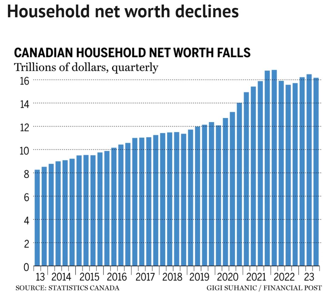 多伦多道明银行的经济学家玛利亚·索洛维耶娃 (Maria Solovieva) 表示,“第三季度金融和非金融资产价值都下降,拖累了家庭总财富。”