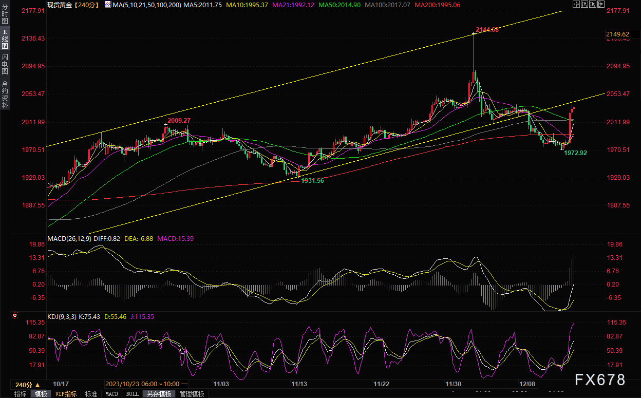 (现货黄金4小时图)