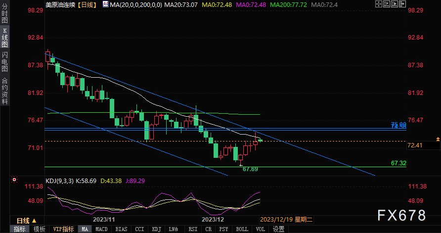 ——周二(12月19日),欧盘时段,美原油连续窄幅震荡,盘中报72.66美元每桶,涨幅0.22%。