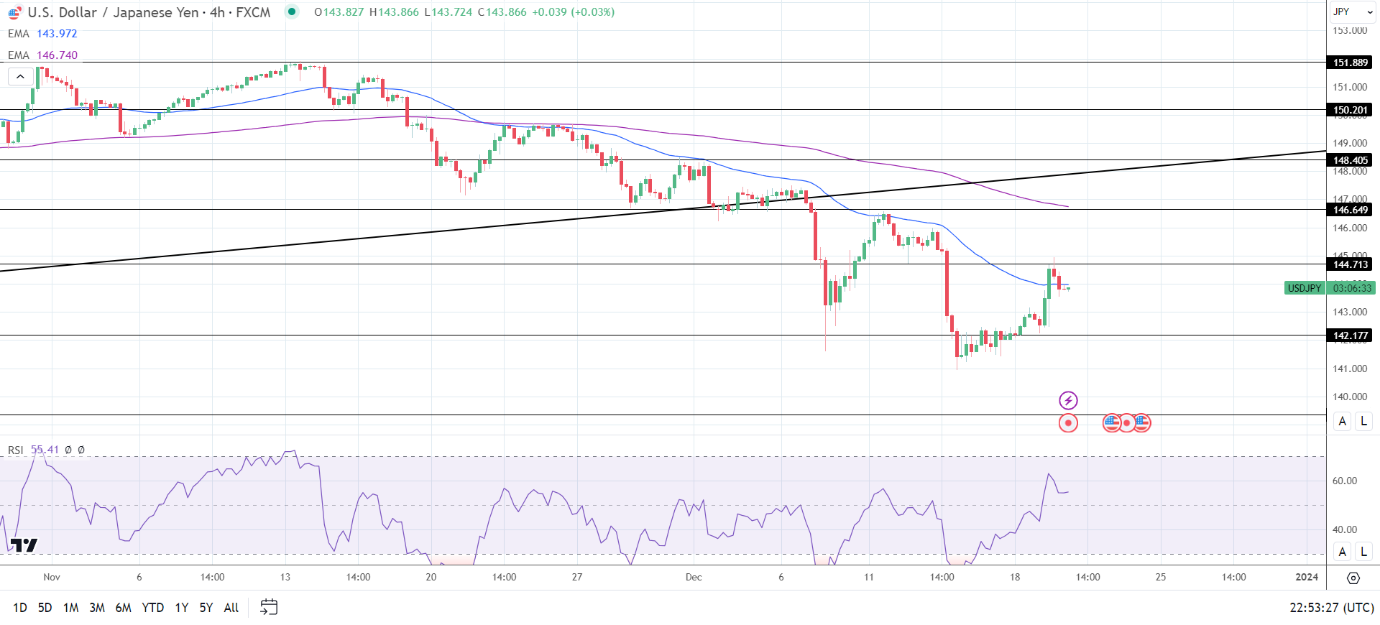 美元/日元突破50日均线将使144.713阻力位发挥作用。