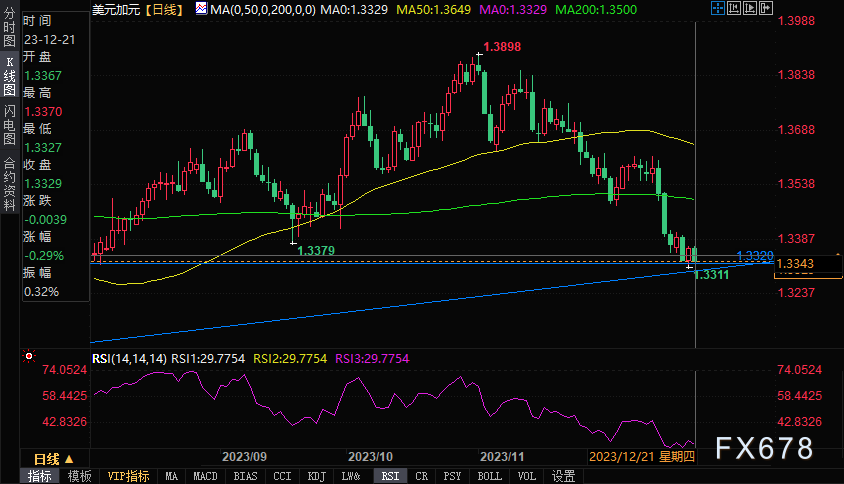 ——周四(12月21日),加元/美元窄幅震荡,盘中报1.3348/47,跌幅0.15%。