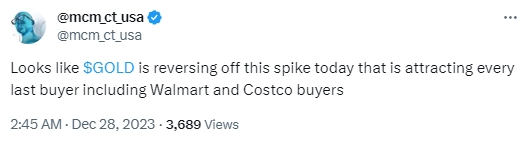 其他用户则称:“看来黄金正在扭转这一高峰,吸引了包括沃尔玛和好市多买家在内的每一位买家。”
