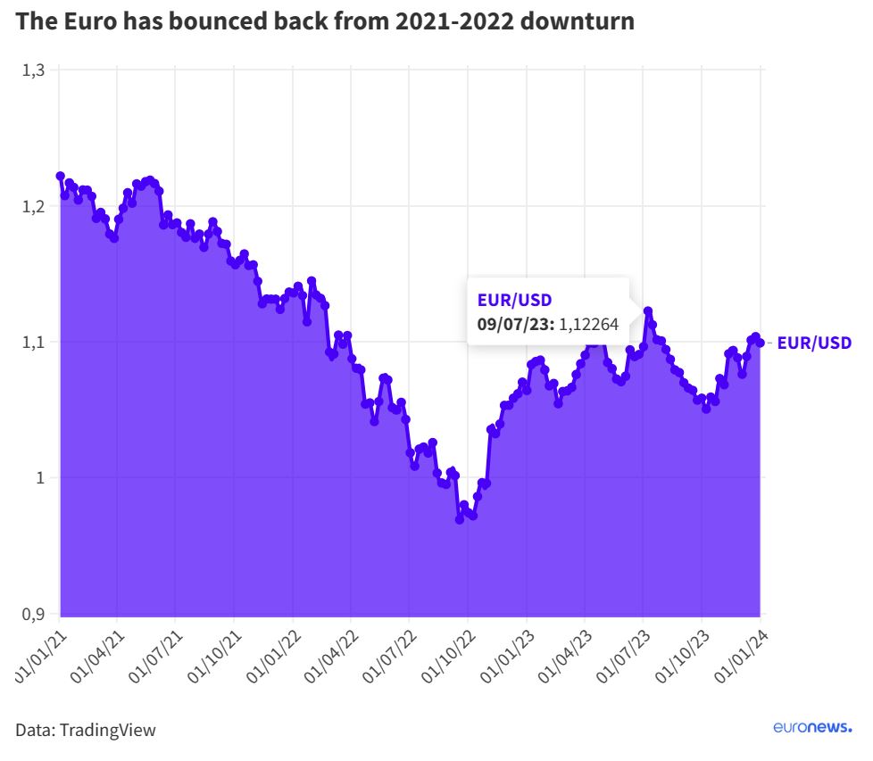 在经历了两年贬值的煎熬后,欧元在2023年反弹,对美元升值了3%。随着这种单一货币进入2024年,它面临着一个充满经济和政治事件的局势,以及可能在未来几个月塑造其发展轨迹的挑战。