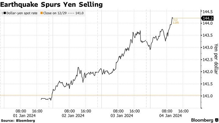 在进入2024年后,由于日本元旦发生强烈地震,使得日本央行(Bank of Japan)本月取消负利率的难度加大,日元面临新的压力。