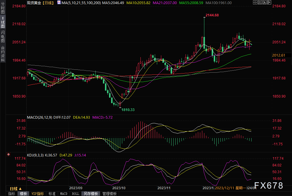 上周二(1月2日),随着宏观经济数据不温不火,股市和政府债券小幅走低,国债收益率上升支撑美元上涨,创去年3月以来的最大单日涨幅。在美国采购经理人指数 (PMI) 数据低于预期后,股市和大宗商品下跌,现货黄金出价回落至近期中位价。现货黄金结算价收跌0.19%,收报2058.86美元/盎司。