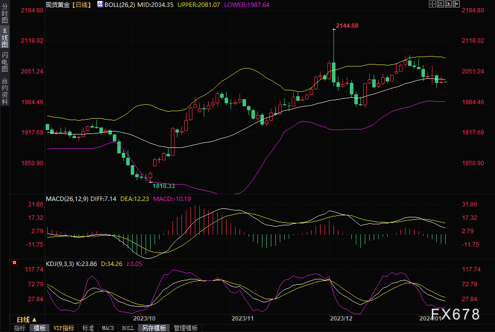 周二(1月9日),金价在前一交易日触及三周低点后上涨,收报2030.10美元/盎司,因为在报告显示消费者预计今年通胀较低后,交易员重新评估了美联储的降息预期。