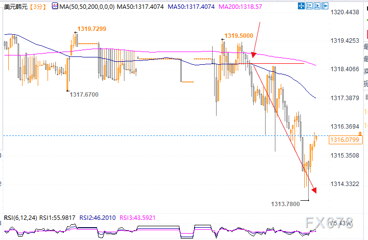 决议发布后,美元兑韩元下跌,与美元指数本身的回调走势一致。