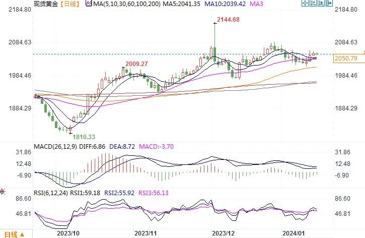 现货黄金日线图截图由易汇通提供北京时间1月16日11:25 现货黄金 报 2050.79 美元/盎司。