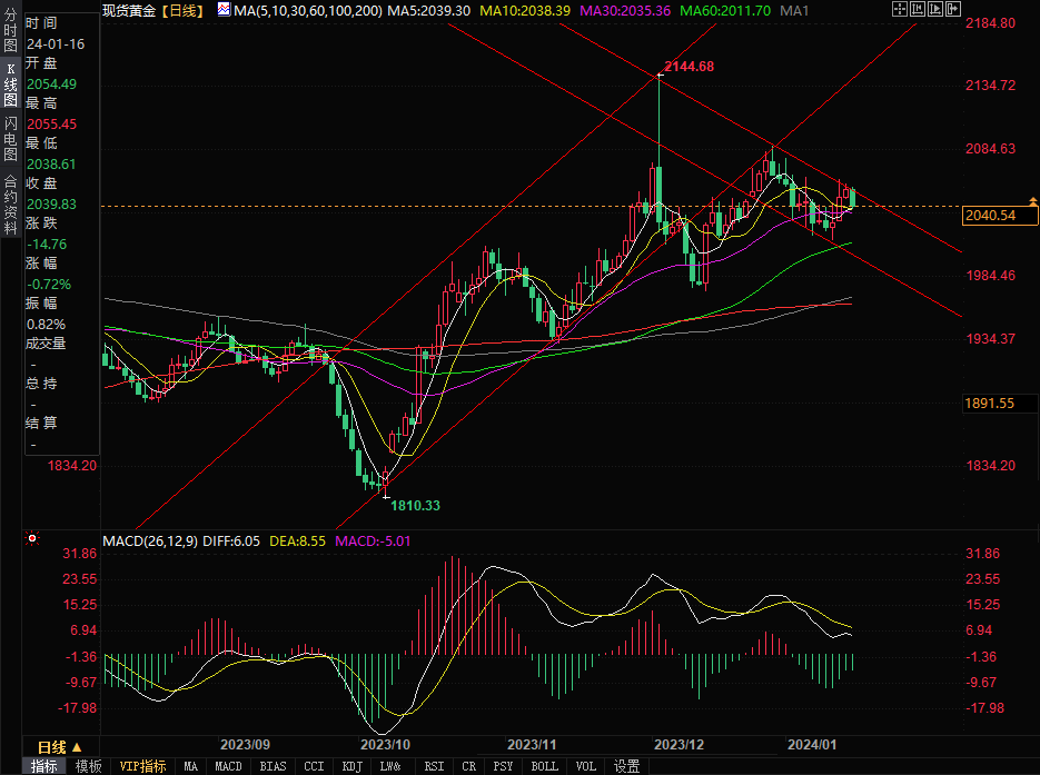——周二(1月16日),黄金在欧市盘中遭遇抛售,失守2040美元关口。此种情况的发生,与美元及美债收益率的双双反弹不无关系。在欧洲央行官员回应了市场对降息的预期之后,欧元走势受到压力。本交易日,市场的关注点转向了与美联储主席鲍威尔观点相近的理事沃勒的讲话,他在此前的鹰派大转向曾推动市场大幅反弹。