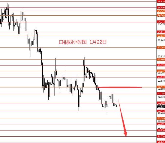 白银上周正如预期向下运行,周图收阴柱。从图形来看,本周继续向下运行的概率较大些,上方重点关注22.90,以下偏向于看空,成功上破后再重新分析。从大级别来看,再跌一波后白银大概率要反转上行,也可以说这是鱼尾行情,所以此区域再做空,切记切记一定要严格止损,一旦反转,上方空间比较大。今日操作策略:22.70附近做空,止损23.20,目标看向22.30和22.10和21.90附近。21.90和21.60附近留意反转信号出现。控制仓量,严格止损。