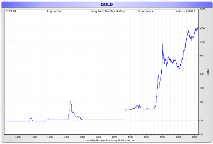 除了黄金与CPI之间的相关性之外,Investing Haven还发现了200年金价图表的价值。