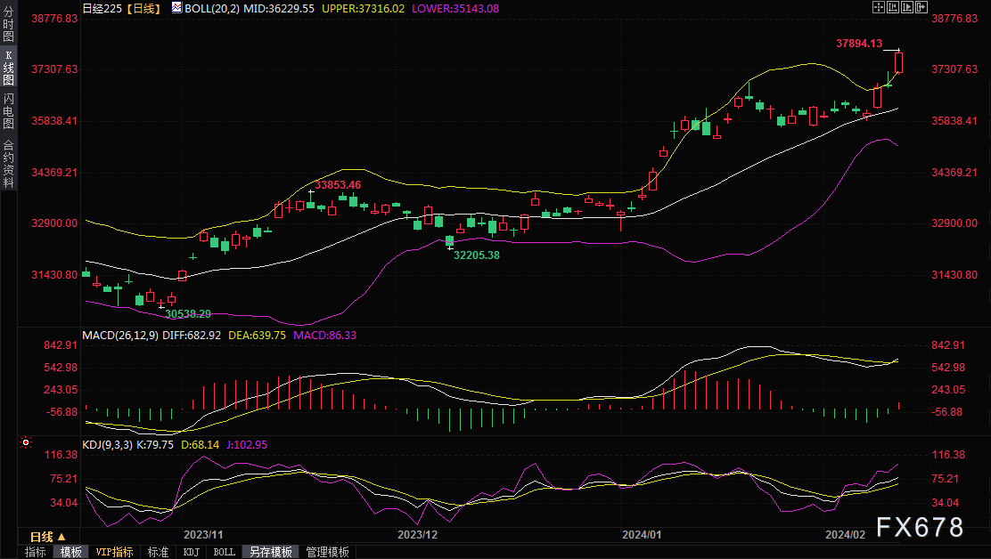 ——周二(2月13日)日本和韩国股市在假期结束后恢复交易,而美国股指期货在今日晚些时候公布通胀数据之前小幅走低。日经225指数大涨2.5%,一度创1990年2月底以来新高至37894.13点。