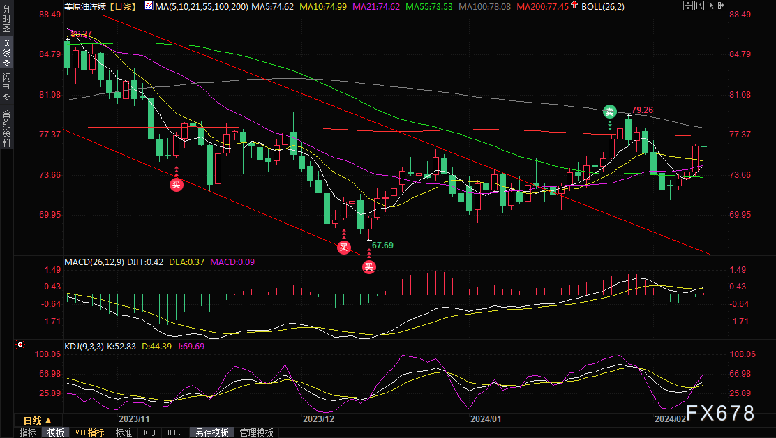 ——周五(2月9日)亚市盘初,美原油窄幅震荡,目前交投于76.36美元/桶附近。油价周四上涨超过3%,美原油最高触及76.57美元/桶,创下一周新高,因市场担忧以色列拒绝哈马斯的停火提议后,中东地区的冲突有扩大的趋势。布伦特原油期货收盘上涨2.42美元,或3%,报每桶81.36美元。美国原油期货收盘上涨2.36美元,或3.2%,报每桶76.22美元。