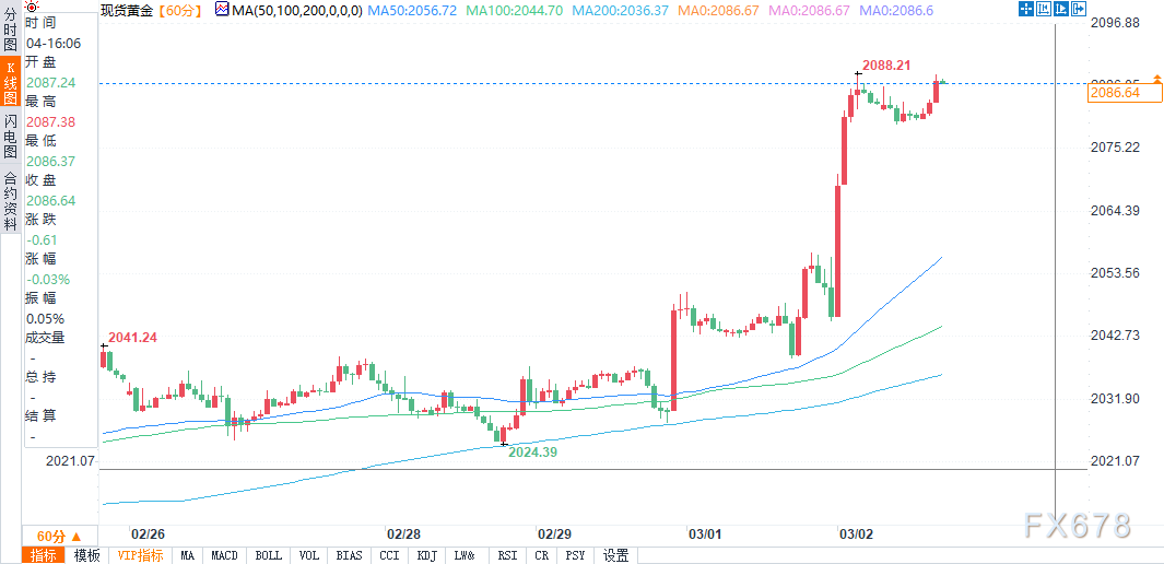 预计金价2024年将走高,持续的地缘政治风险和即将到来的美国大选带来的地缘政治不确定性将继续支撑避险需求。假设美联储在2024年第二季度开始降息,美元走软,预测第四季度金价平均为2150美元/盎司,2024年全年平均价格为2081美元/盎司。下行风险围绕美国货币政策和美元走强。长期走高的说法可能会导致美元长期走强,金价走弱。北京时间16:06,现货黄金报2086.21美元/盎司,涨幅0.14%。