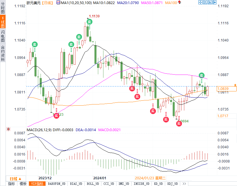 本周初,欧元在1.0860附近震荡,周二起连续三天下滑,最低至1.0796,然而周五强势反弹,收复全周跌幅,最终报收于1.0837,全周小涨0.17%。英镑本周走势与欧元相似,周二起连续三日下跌,整体保持在1.27-1.26区间,但周五大幅回升,成功站上1.2650,尽管如此,全周仍下跌0.14%。