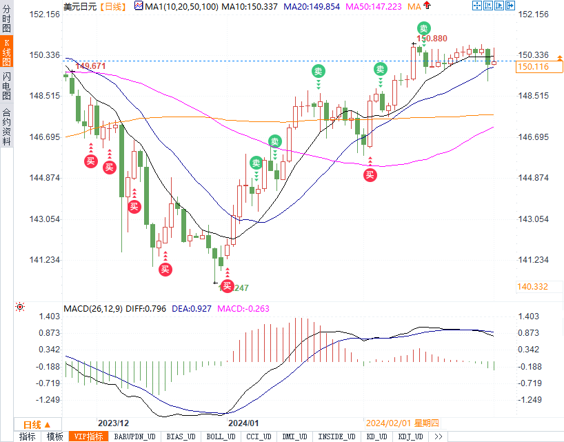 美元/日元本周初连续三个交易日于150.50附近震荡,然而周四在鹰派官员的影响下一度跌破150关口,最低至149.20,周五波动剧烈,最终收于150关口上方,全周小跌0.27%,结束此前连续四周的升势。
