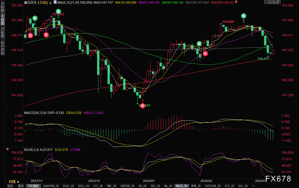 (美元兑日元日线图,来源:易汇通)北京时间11:12,美元兑日元现报147.38/39。