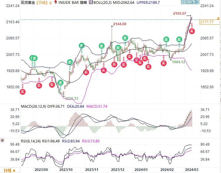 截至发稿,现货黄金报2177.82,日内涨0.03%,上涨0.68美元.