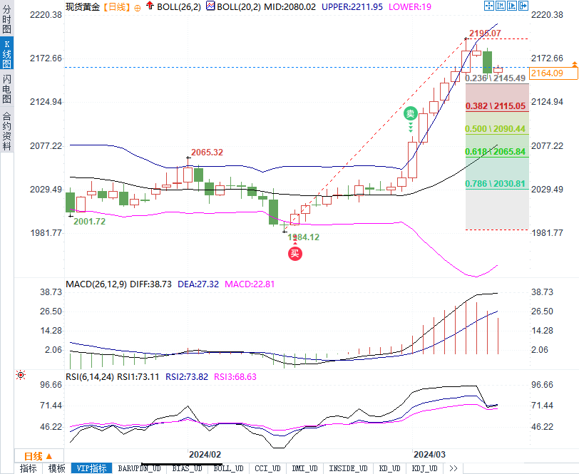 美国劳工部周二发布的报告显示,2月份CPI环比增长0.4%,符合预期,同比增长3.2%,略高于市场预期的3.1%。剔除能源和食品项目后,核心CPI环比增长0.4%,同比增长3.8%,均高于预期。现货黄金周二收盘下跌24.15美元,跌幅为1.11%,收报2158.32美元/盎司。