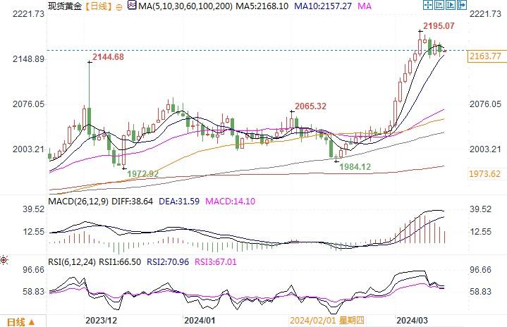 现货黄金日线图来源:易汇通北京时间3月15日11:57 现货黄金 报 2163.77 美元/盎司