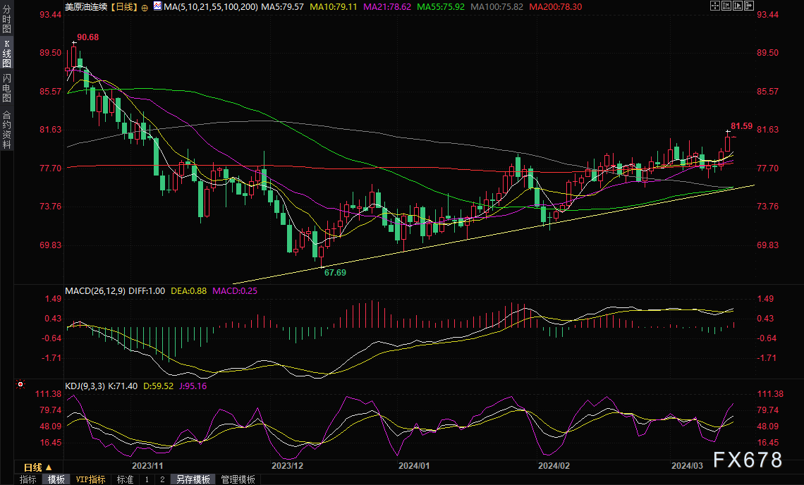 4月美国原油期货上涨1.54美元,或1.9%,收于81.26美元,也是自11月初以来的最高收盘价。