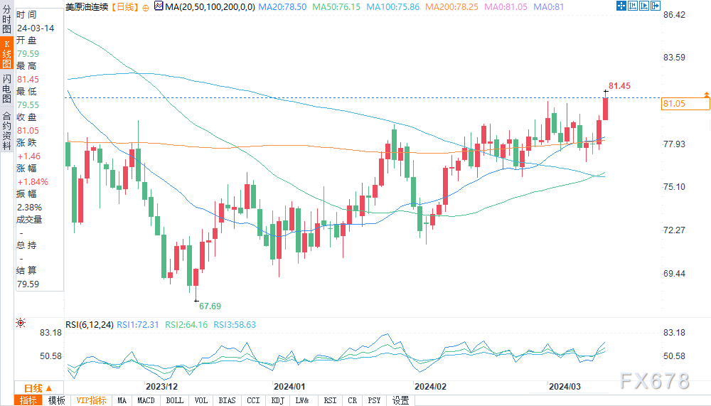 北京时间周五00:20,WTI原油报81.14美元每桶,涨幅1.94%。布伦特原油报85.25美元每桶,涨幅1.22%。