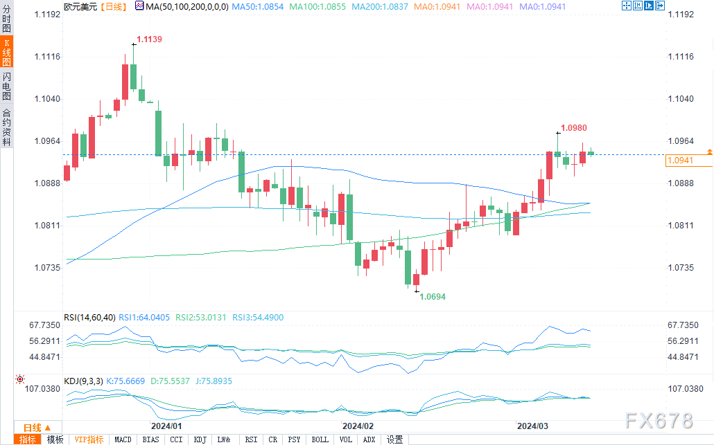 周四北京时间20:30,美国2月份PPI和零售销售数据将发布,我们将更清楚地了解更广泛的价格趋势和美国消费者的健康状况。如果数据上行可能导致人们意识到,通胀风险和经济实力被低估了,从而引发对利率预期的鹰派重新定价,这将对美元有利。