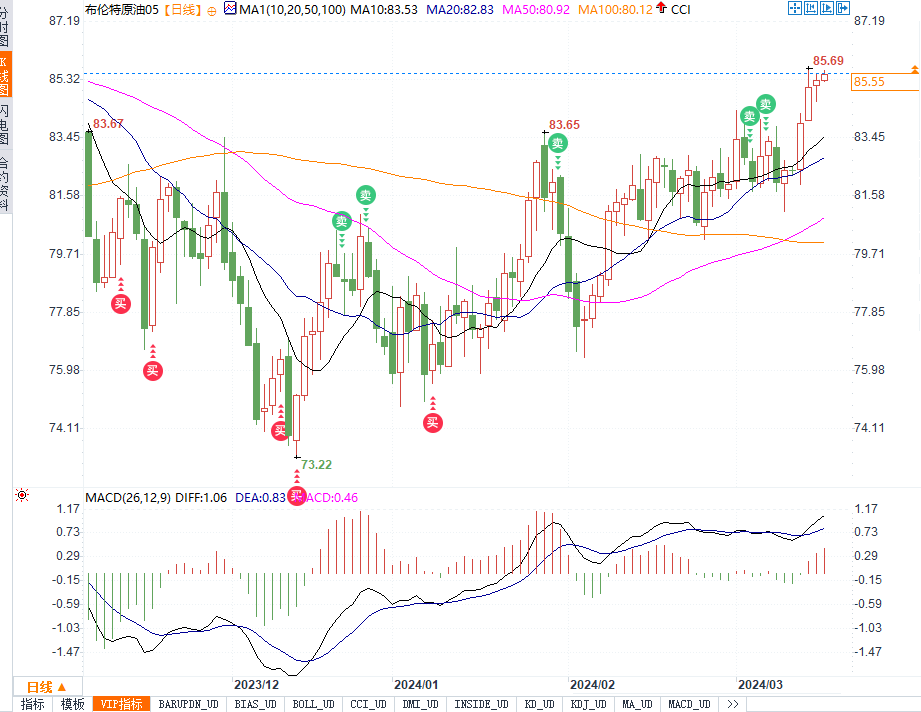 ——原油价格在周一亚洲早盘交易中略有上涨,巩固了上周上涨近4%的涨幅,因为市场认为供应正在收紧。截至发稿,布伦特原油期货(5月交割)上涨0.22美元,至每桶85.56美元。美国西德克萨斯中质原油(WTI)4月合约上涨0.24美元,至每桶81.28美元。