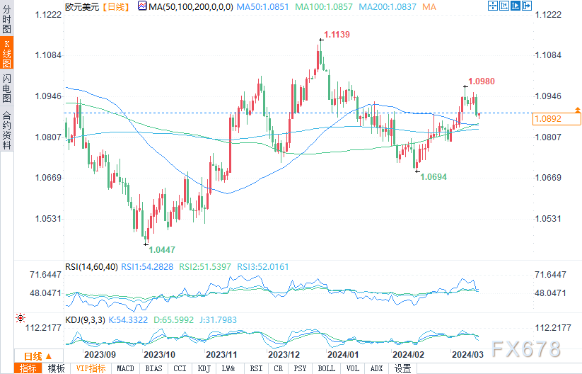 在美元普遍走强和越来越多的欧洲央行降息猜测的推动下,欧元/美元下跌至1.0873。