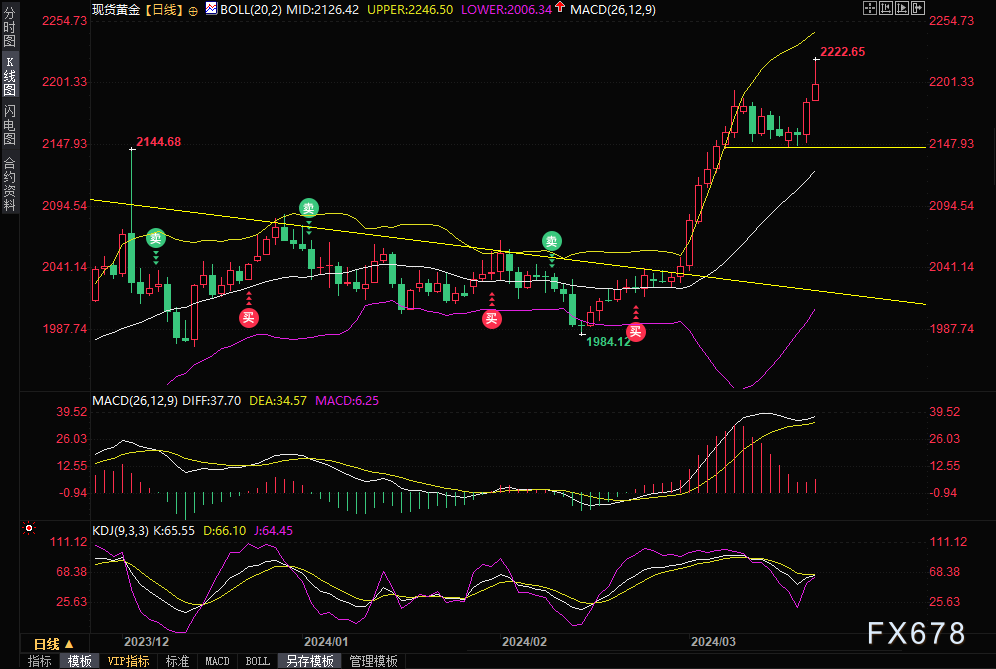 现货黄金周三大涨0.63%,盘中最高曾触及2222.65美元/盎司,刷新历史记录高点,收报2186.08美元/盎司。周四亚市,金价延续涨势,截止07:18,报2202.06美元/盎司,涨幅约0.73%。