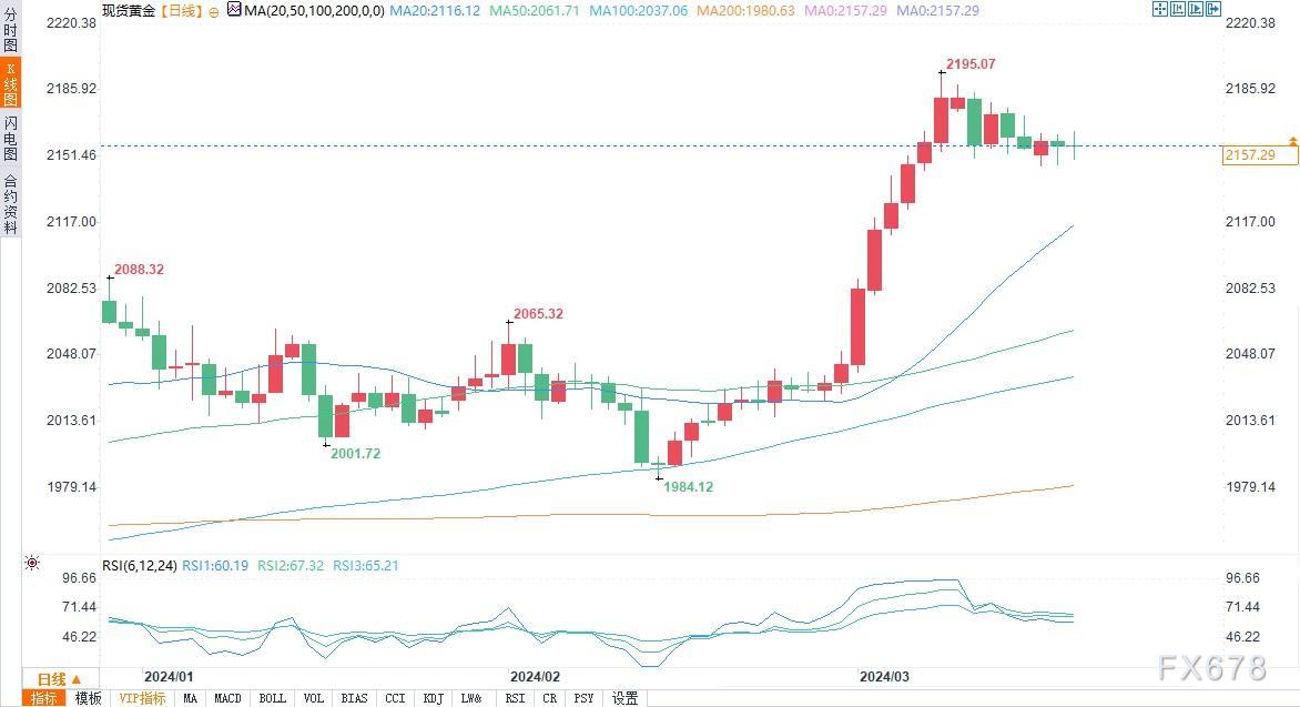 北京时间周四0:04,现货黄金报2157.41,涨幅为0。