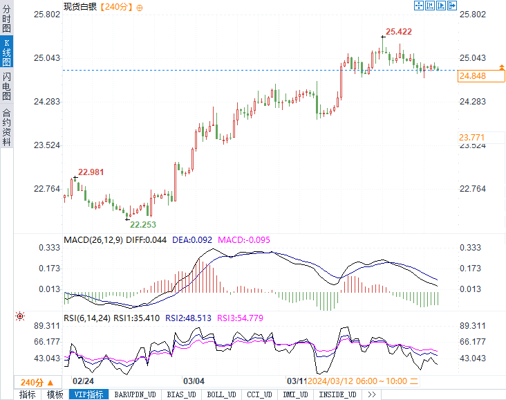 综上所述,今日白银价格预计将呈现上涨趋势,我们预计银价交投将位于支撑位24.70美元/盎司和阻力位25.40美元/盎司之间。