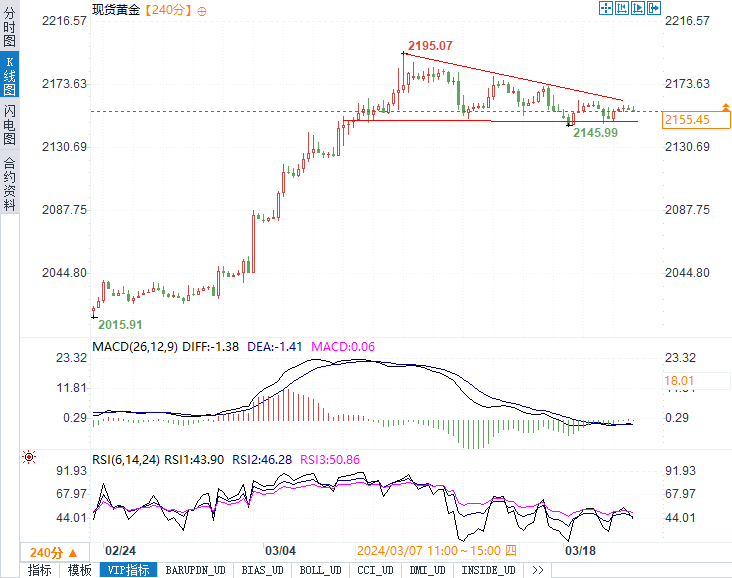 ——周三(3月20日),现货黄金在欧市盘初交投于2160美元/盎司下方。投资者正怀着谨慎的态度,等待美联储发布货币政策声明。然而,市场对黄金短期内的上行空间持保留态度。