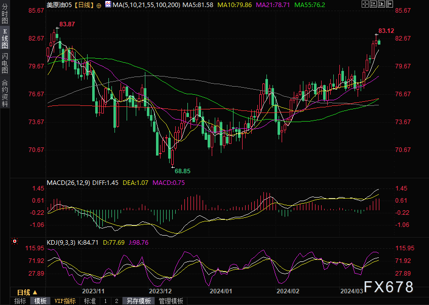 ——油价周三(3月20日)小幅下跌,美元的强势表现抑制了投资者的偏好。在油价上涨至数月高点后,部分交易员选择撤出部分资金。截止到16:00,布伦特原油5月期货下跌0.65%,至每桶86.86美元,而美国WTI原油4月期货下跌0.6%,至每桶83.00美元,此合约于周三到期。活跃的5月WTI合约下跌至82.13美元/桶。