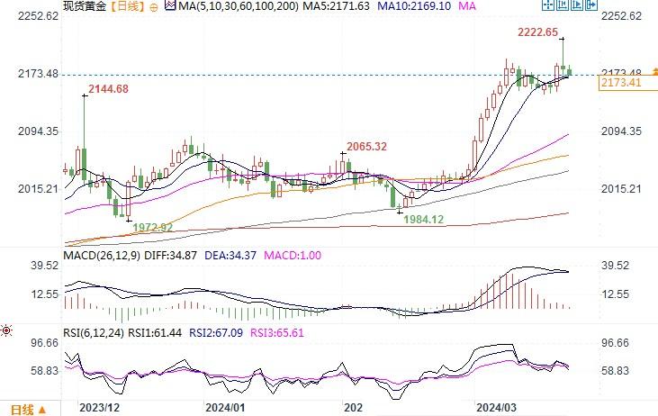 现货黄金日线图来源:易汇通北京时间3月22日13:31 现货黄金 报 2173.41 美元/盎司