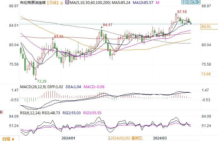 布伦特原油连续日线图来源:易汇通北京时间3月27日11:28 布伦特原油连续 报 84.95 美元/桶