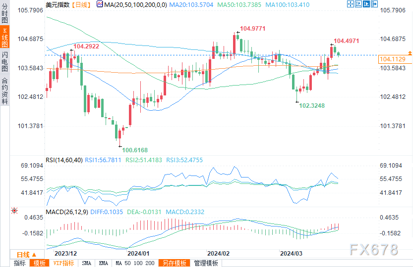 目前美元指数在104.497上方看涨,但跌破这一关键标志可能会引发明显抛售。