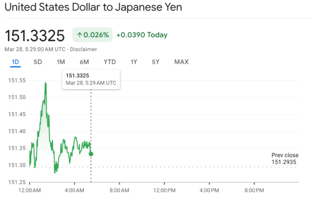 3月28日,野村证券交易和投资银行业务主管Christopher Willcox接受采访时指出,预计日元今年将走强,美元兑日元汇率应该回到140。日元走强将“主要受到美联储进一步放宽货币政策和日本收紧政策的推动。”
