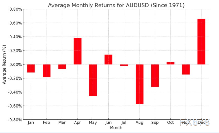 韦勒表示:“澳元兑美元在1月和2月均下跌,截至目前,预计3月份的结算将保持大致不变。在此背景下,自1971年以来,4月份一直是澳元/美元最为看涨的第二个月,平均回报率为0.38%。”