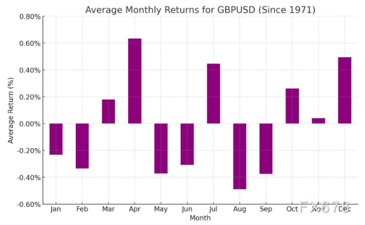 不仅加元,澳元/美元和英镑/美元也在历史上显示出季节性的强劲表现。澳元/美元在4月份通常是最为看涨的月份之一,平均回报率约为0.38%,而英镑/美元在4月份表现出其历史上最强劲的看涨趋势,平均回报率超过0.6%。
