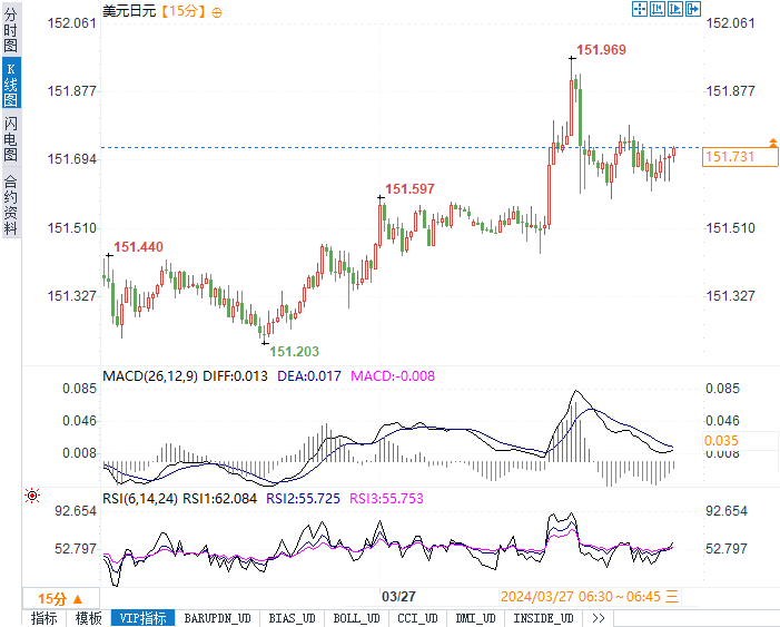 ——周三(3月27日),市场波动最为显著的是日元。日元试探性跌破34年来的低点,引发了日本官员的口头警告。除日本央行官员的讲话外,市场还将密切关注欧美央行等官员的发言。自1990年以来,日元首次试探性地突破了1美元兑152日元的高点,这立即引发了日本财务大臣的警告,他表示将采取“果断措施”来遏制这种“无序”的走势。上一次他使用这样的措辞是在央行于2022年底进行干预以支撑日元之前。
