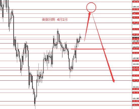 4月1日,美指上周区间震荡,周图收小阳柱。从图形来看,还在上周的震荡区间内运行,后市103.80以上偏向于看涨,上方关注105.80和106.40强阻力。本周初建议按高位震荡偏大多头操作,但目前没有具体操作建议。