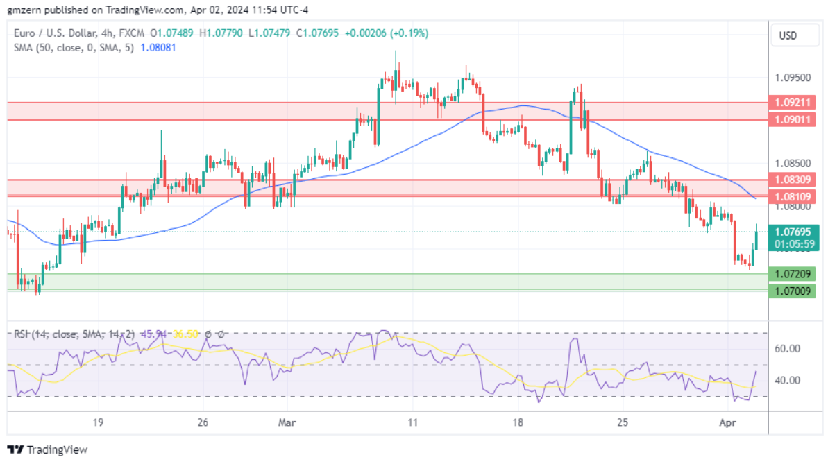欧元/美元反弹,因交易商对好于预期的欧元区制造业PMI报告做出反应,该报告显示制造业PMI从2月份的46.5下降至3月份的46.1。分析师预计该指数将降至45.7。