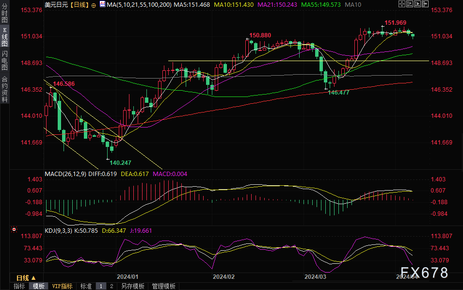 随着美元/日元徘徊在上周三触及的34年高点151.975附近,市场仍对日本政府干预的可能性保持警惕。