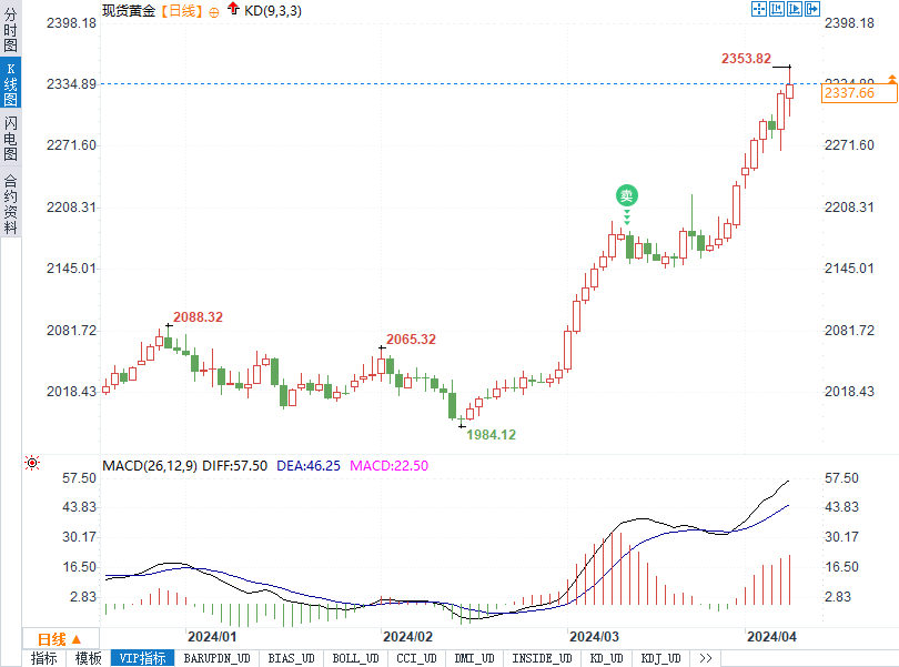 ——黄金价格近期持续上涨,其背后的推动力主要来自于投机买盘和地缘政治紧张局势。尽管上周美国公布的就业数据显示出强劲的经济增长,但金价并未受到太大影响,依然保持强势。截至目前,现货黄金价格已经攀升至每盎司2336.72美元,涨0.37%。日内稍早,金价甚至触及了2353.79美元的历史高位,显示出市场对黄金的强烈兴趣。同时,美国期金GCcv1也上涨了0.49%,报价为2356.4美元。