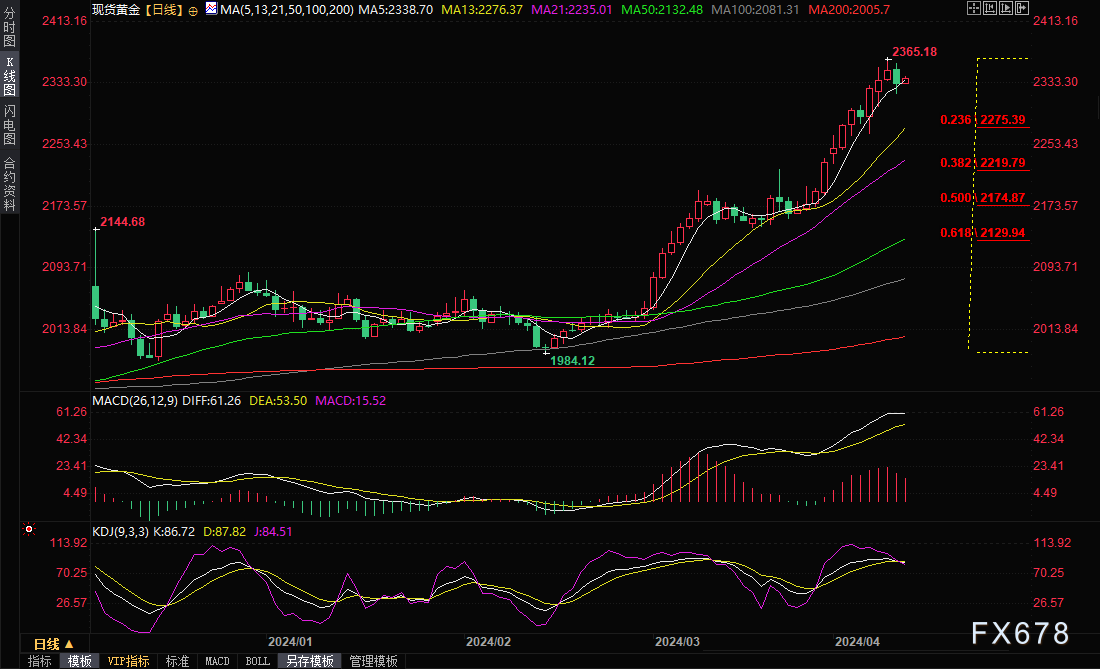 ——周四(4月11日)金价小幅反弹,现货黄金目前交投于2341.02美元/盎司附近,涨幅约0.3%,受地缘局势担忧支撑。不过,隔夜公布的美国通胀数据热于预期,削弱美联储提前降息的希望后,美元和美债收益率走强至近五个月高位,金价周三也从历史高位一度回落至2320关口附近,分析师认为,黄金下跌行情才刚刚开始,现在做空黄金是合理的。