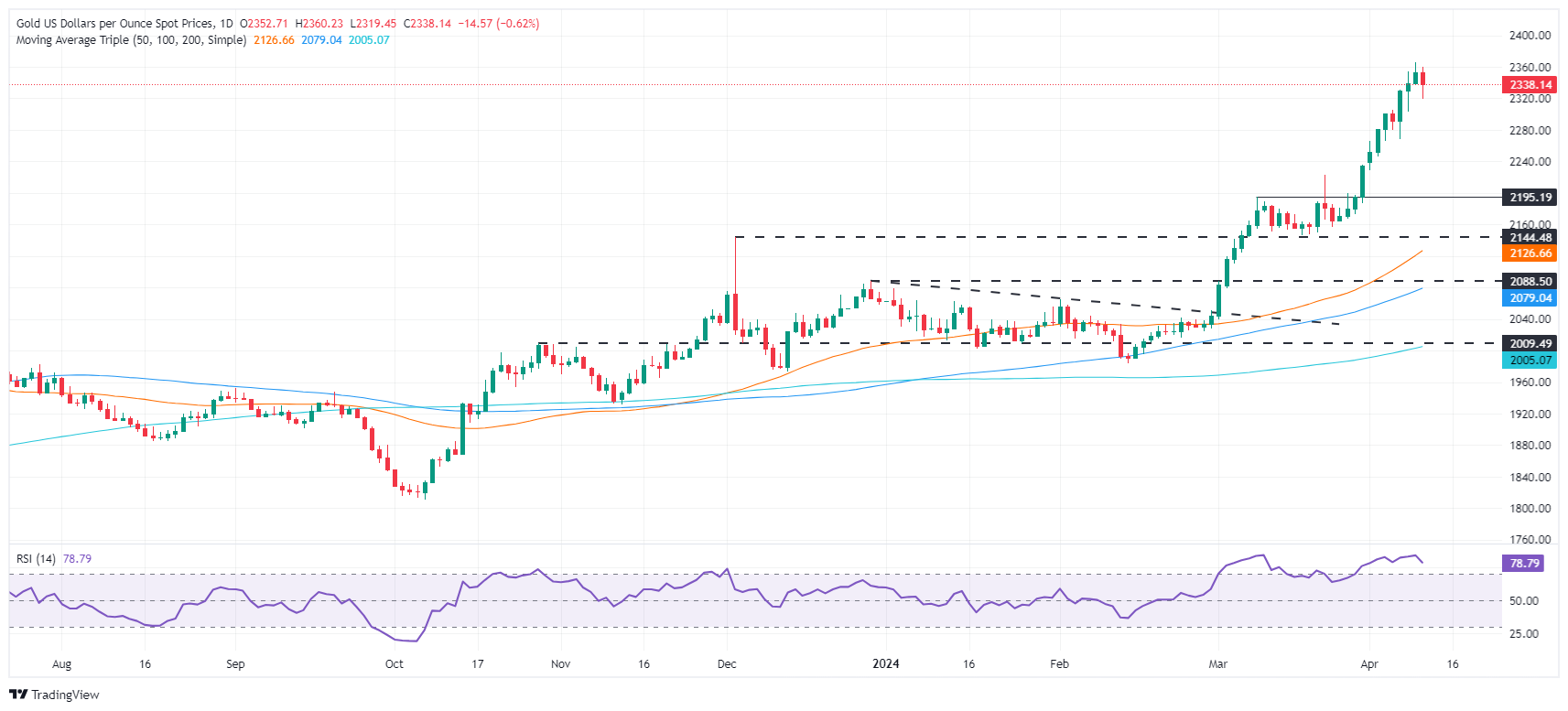 Valencia写道,黄金从历史高点回落,打开形成黄昏之星形态的大门。然而,金价必须收于4月8日开盘的2329美元/盎司下方,若如此,这将为更深层次的回调铺平道路。