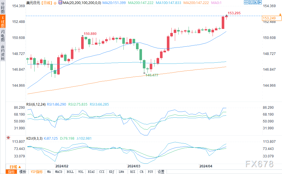 亚市早盘,美元/日元突破153,创下34年新高。由于东京当局重申不排除采取任何措施来应对过度波动,日元的下跌引发了对干预的担忧。