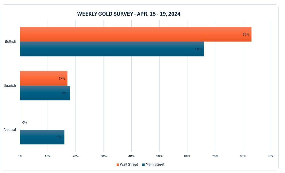 Kitco News最新的每周黄金调查显示,华尔街和散户对黄金前景几乎步调一致,认为地缘政治风险将继续推动金价进入未知领域。